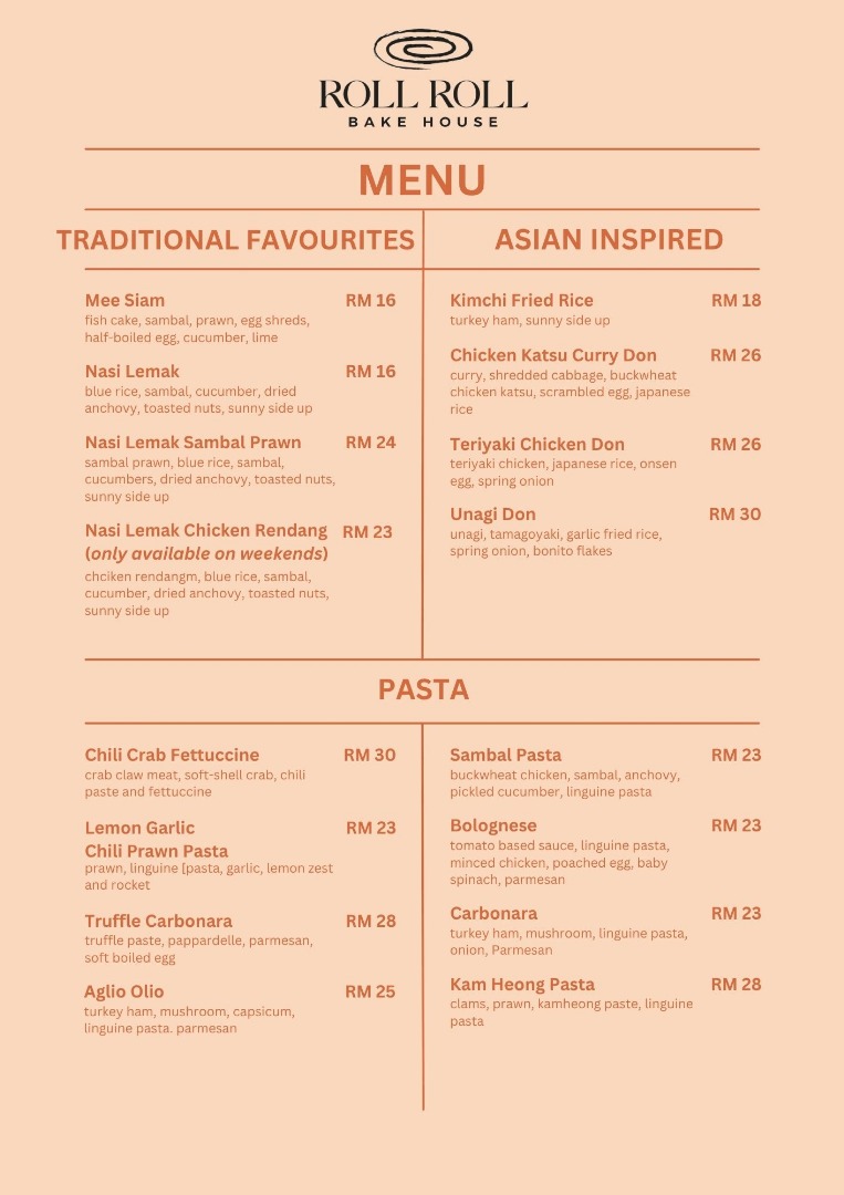 Welcome to Roll Roll Bakehouse, a charming cafe located in the heart of Kuala Langat, Malaysia. This delightful spot offers a fusion of Western and Asian flavors, making it a culinary gem worth exploring. The menu showcases an array of enticing options, from their Iced Matcha Strawberry Latte to the Truffle Fries, each crafted to perfection.